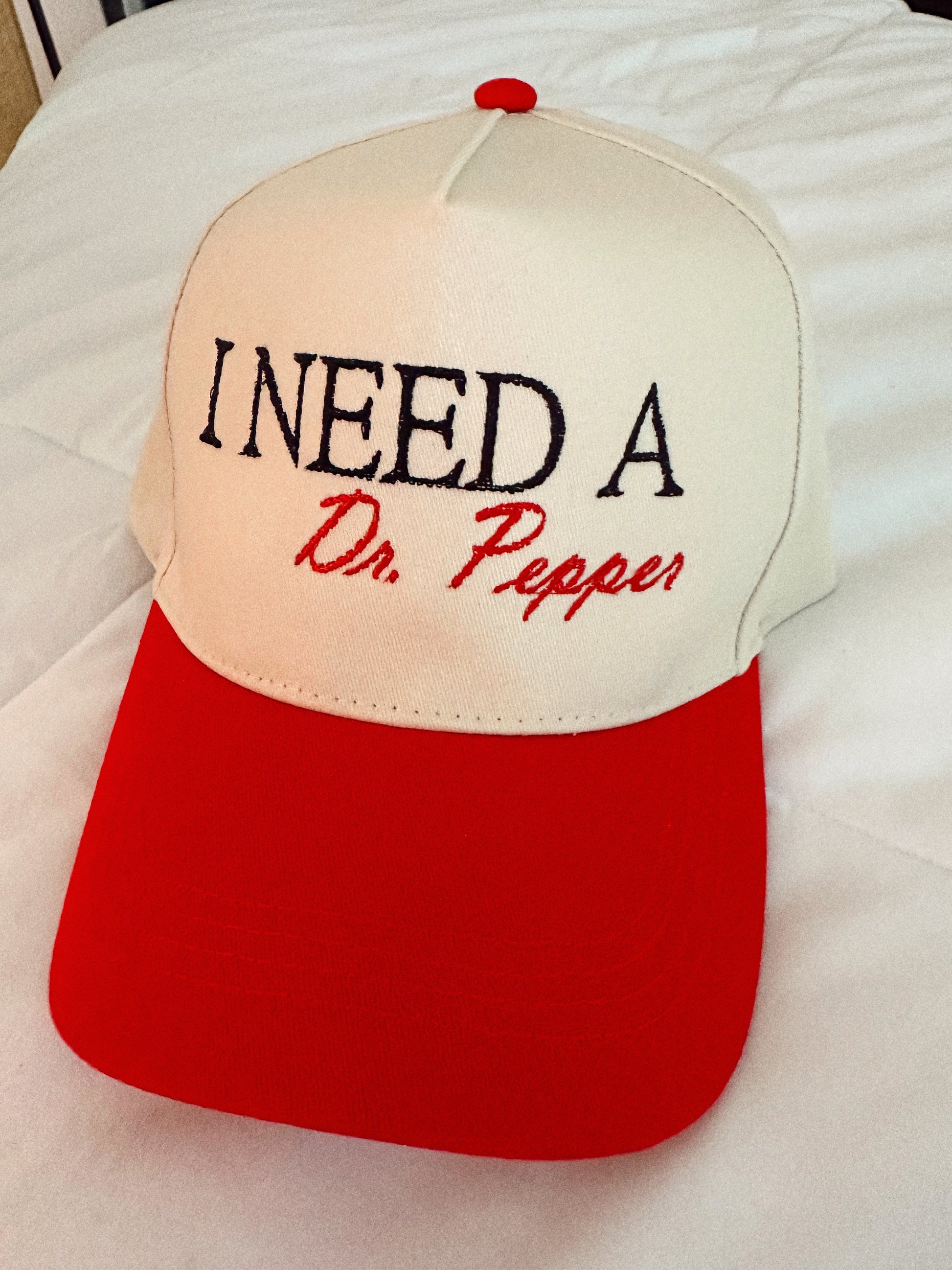For the die-hard soda lover, this retro-inspired trucker hat says it all—I NEED A Dr. Pepper. Featuring bold black and red embroidery on a classic red-and-cream foam front, this cap brings vintage vibes with a side of sass. Designed with a structured fit and breathable mesh back, it’s perfect for sunny days, road trips, or just making a statement.