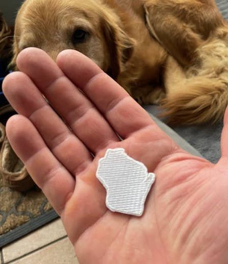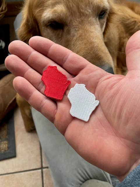 FOR Wisconsin BY Wisconsin IN Wisconsin It's cute. It's tiny. It's Wisconsin. It's great! 1.25" Embroidered patch with industrial strength BEMIS adhesive backer for easy, no sew, application on your backpacks, jackets, hats….anything!
