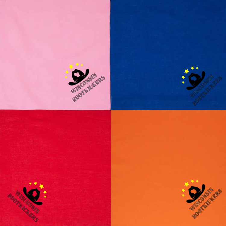 Rep your Bootkicker pride with these custom embroidered bandanas! Made from soft cotton and available in multiple colors, each features detailed Wisconsin Bootkickers embroidery — perfect for line dancing.